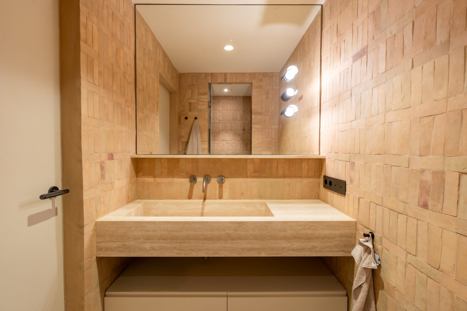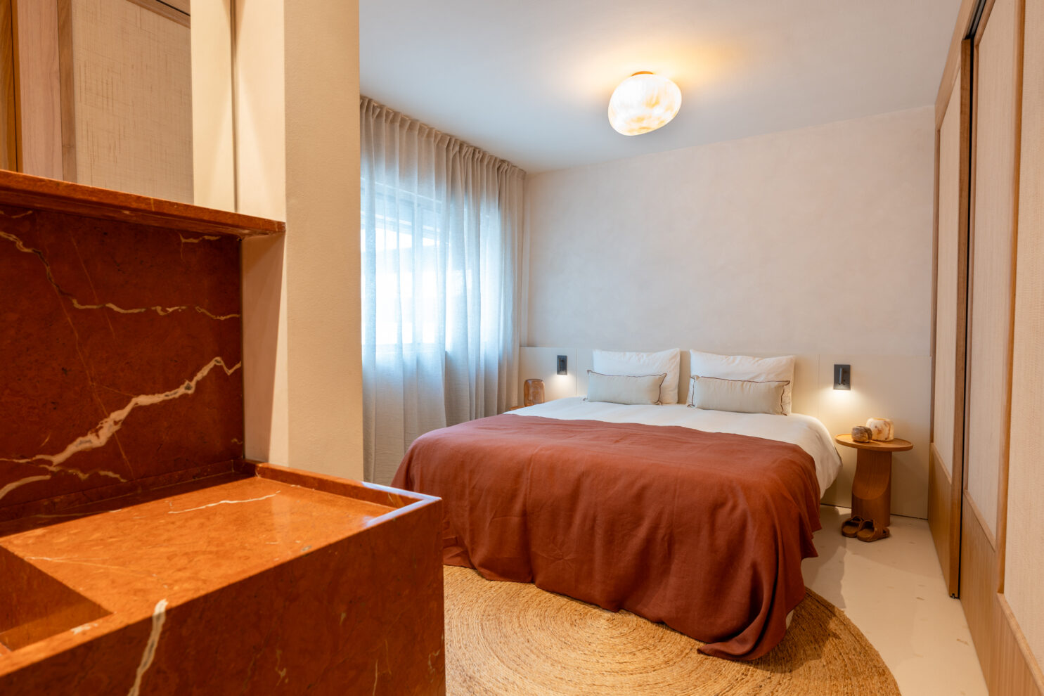 The living and dining area open directly onto a 77m2 private garden with saltwater swimming pool, outdoor shower and a sunny terrace with pergola. This could easily become your favorite place, as it’s perfectly situated for enjoying an outdoor breakfast or relaxing afternoon chat.