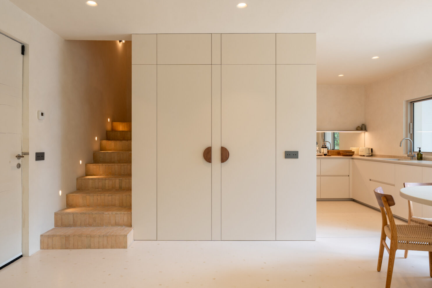 The main level is one open space, where the kitchen, dining and living areas flow into each other. The use of space has been thought through properly, creating built-in space with high quality carpentry work. The kitchen is designed both for serious cooks and casual entertainment, with the use of premium brands such as Bora, and… a wine fridge.