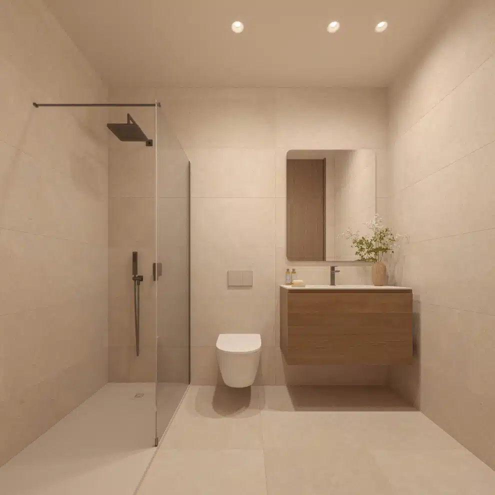 – High-quality finishes: Porcelanosa ceramics, Duravit bathrooms, Tres Loft black taps, Silestone counters.