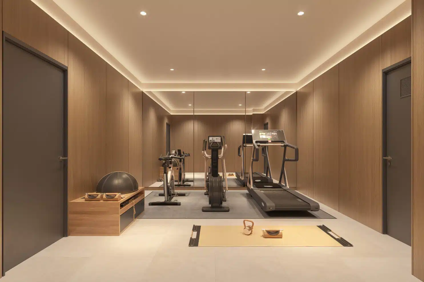 – A flexible basement level with a private gym (15m²), garage (~42m²), storage, and technical rooms.