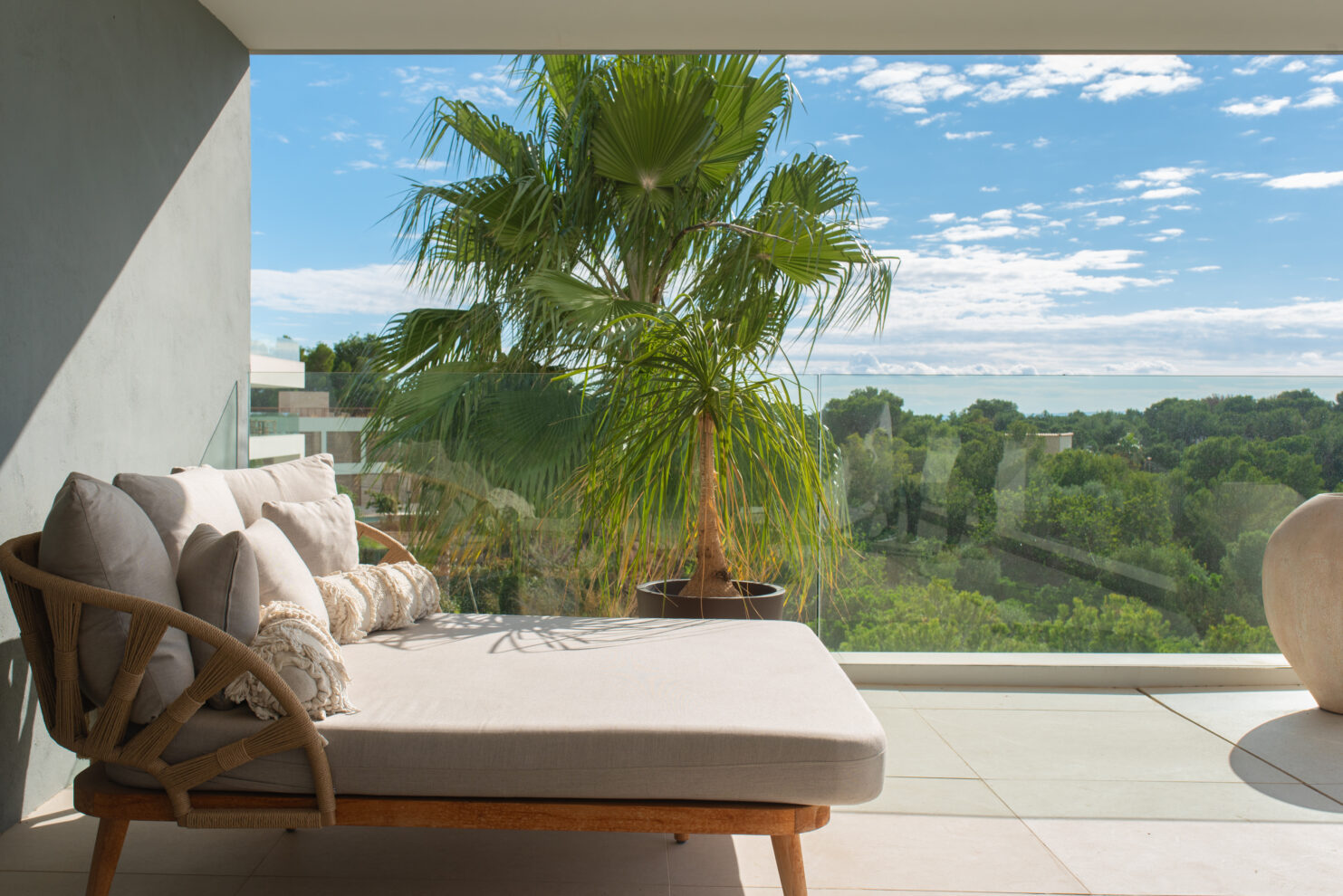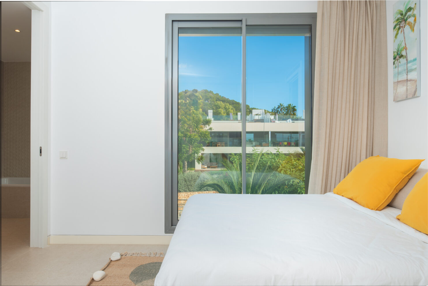 Full views of Dalt Villa and the sea from your rooftop terrace with pool… And 4 bedrooms which give you the grand feeling of living in a villa, though having the convenience of less maintenance and a community with like-minded owners, community pool, gym and on-site concierge.